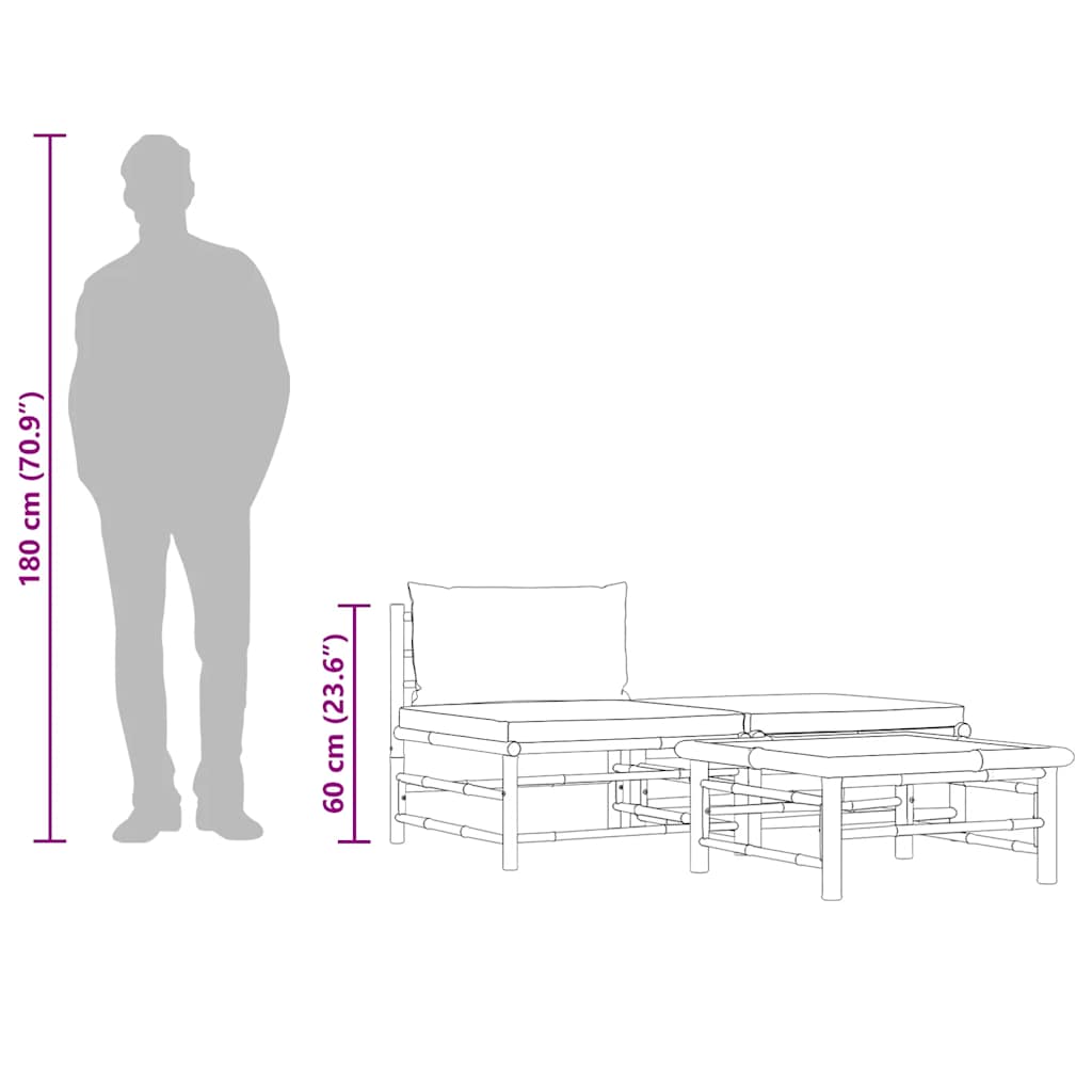 vidaXL 3 Piece Garden Lounge Set with Dark Grey Cushions Bamboo
