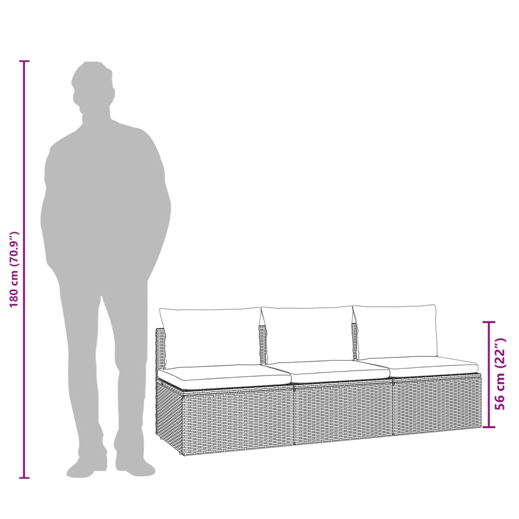 vidaXL 3-Seater Garden Sofa with Cushions Grey Poly Rattan