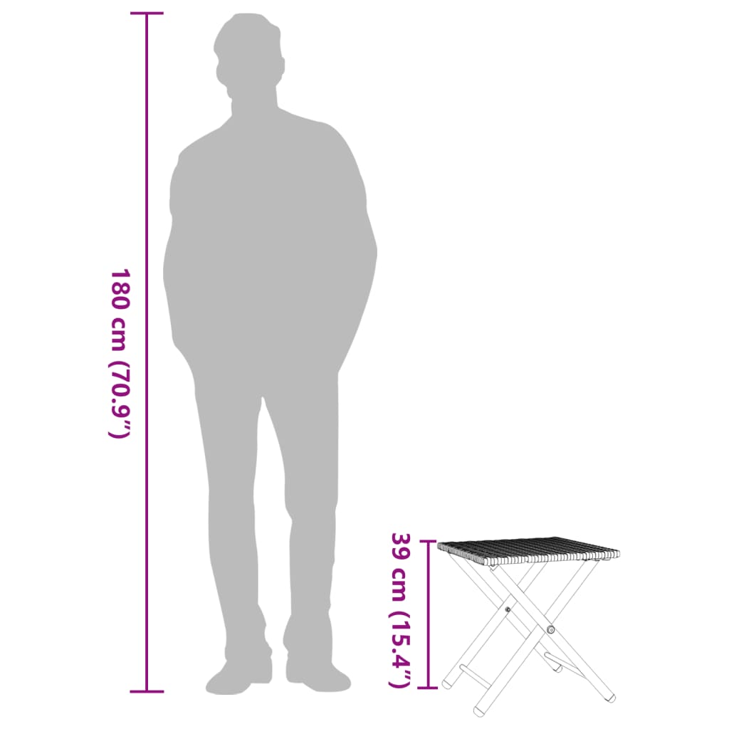 This garden dining set is a great choice for you to take along during the camping journey or just relax in the garden, backyard, or patio. Durable material: PE rattan, also known as poly rattan, is a strong, low-maintenance synthetic material that looks like natural rattan. It’s lightweight, easy to clean, and commonly used for outdoor furniture due to its durability and weather-resistant properties.Compact storage: The table and stools can be folded up for easy storage and transport. Additionally, the stools can also be stored inside the table, further maximising space efficiency.Robust and stable frame: The powder-coated steel frame ensures that the garden furniture is strong and stable for daily outdoor use. Good to know:To make sure your outdoor furniture stays beautiful, we recommend protecting it with a waterproof cover.
