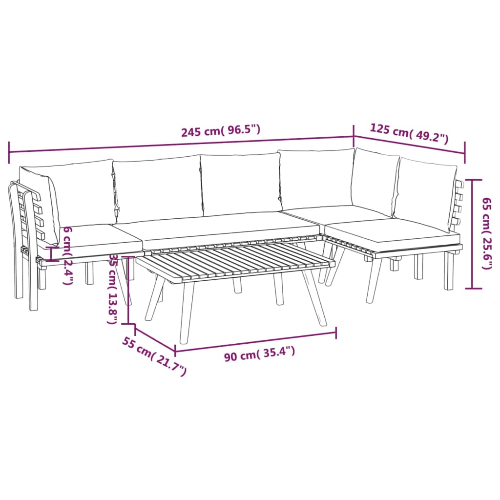 vidaXL 5 Piece Garden Lounge Set with Cushions Solid Wood Acacia