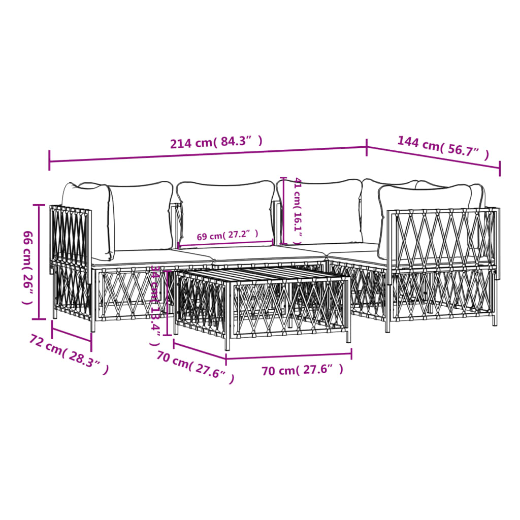 vidaXL 5 Piece Garden Lounge Set with Cushions White Steel