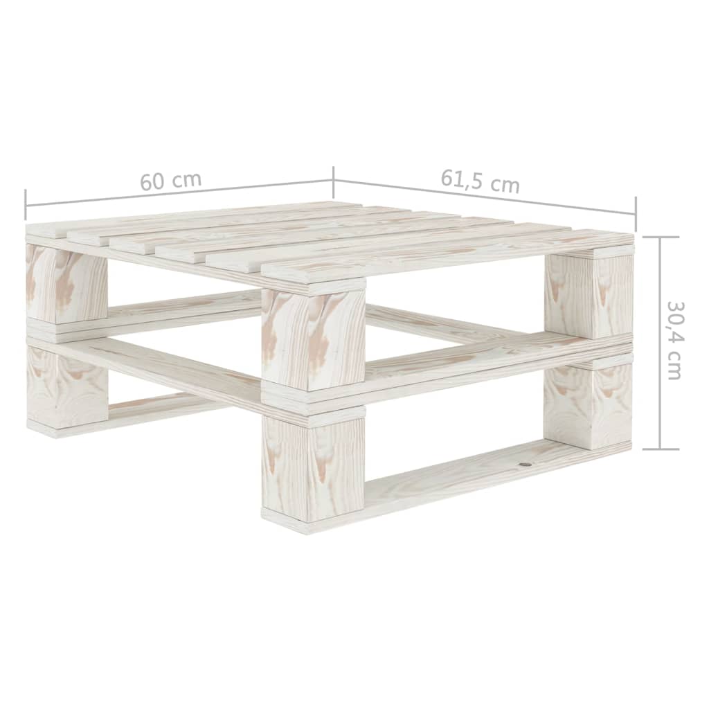 - Pallet table/ottoman dimensions: 60 x 61.5 x 30.4 cm (L x W x H)