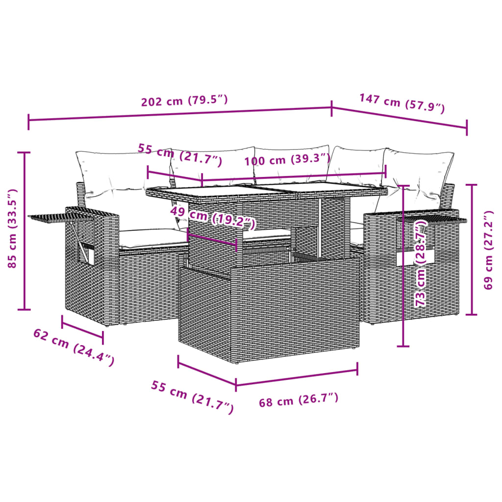 vidaXL 5 Piece Garden Sofa Set with Cushions Beige Poly Rattan