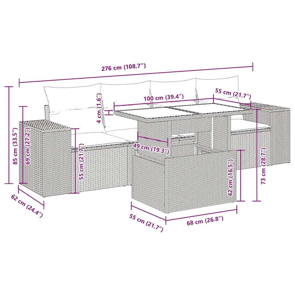 This garden sofa set is the perfect addition to your backyard, terrace, or patio, providing a comfortable and inviting space for chatting with family and friends or simply relaxing and enjoying the outdoors. Durable material: PE rattan, also known as poly rattan, is a strong, low-maintenance synthetic material that looks like natural rattan. It’s lightweight, easy to clean, and commonly used for outdoor furniture due to its durability and weather-resistant properties.Storage function with water-resistant bag: The garden furniture features storage space under the seat, complete with a water-resistant bag for storing cushions, toys, and other items. The inner bag can be securely fastened to the outdoor furniture with hook-and-loop fasteners for added stability.Adjustable tabletop: The tabletop can be lifted to make the table higher, which transforms the outdoor table from a coffee table to a dining table. It’s perfect for having guests over or eating meals outside.Removable and washable cover: These seat cushions feature removable covers for easy washing and maintenance.Modular design: This outdoor furniture set has a modular design, making it completely flexible and easy to move around, so you can create a customised outdoor furniture arrangement. Good to know:To make sure your outdoor furniture stays beautiful, we recommend protecting it with a waterproof cover.