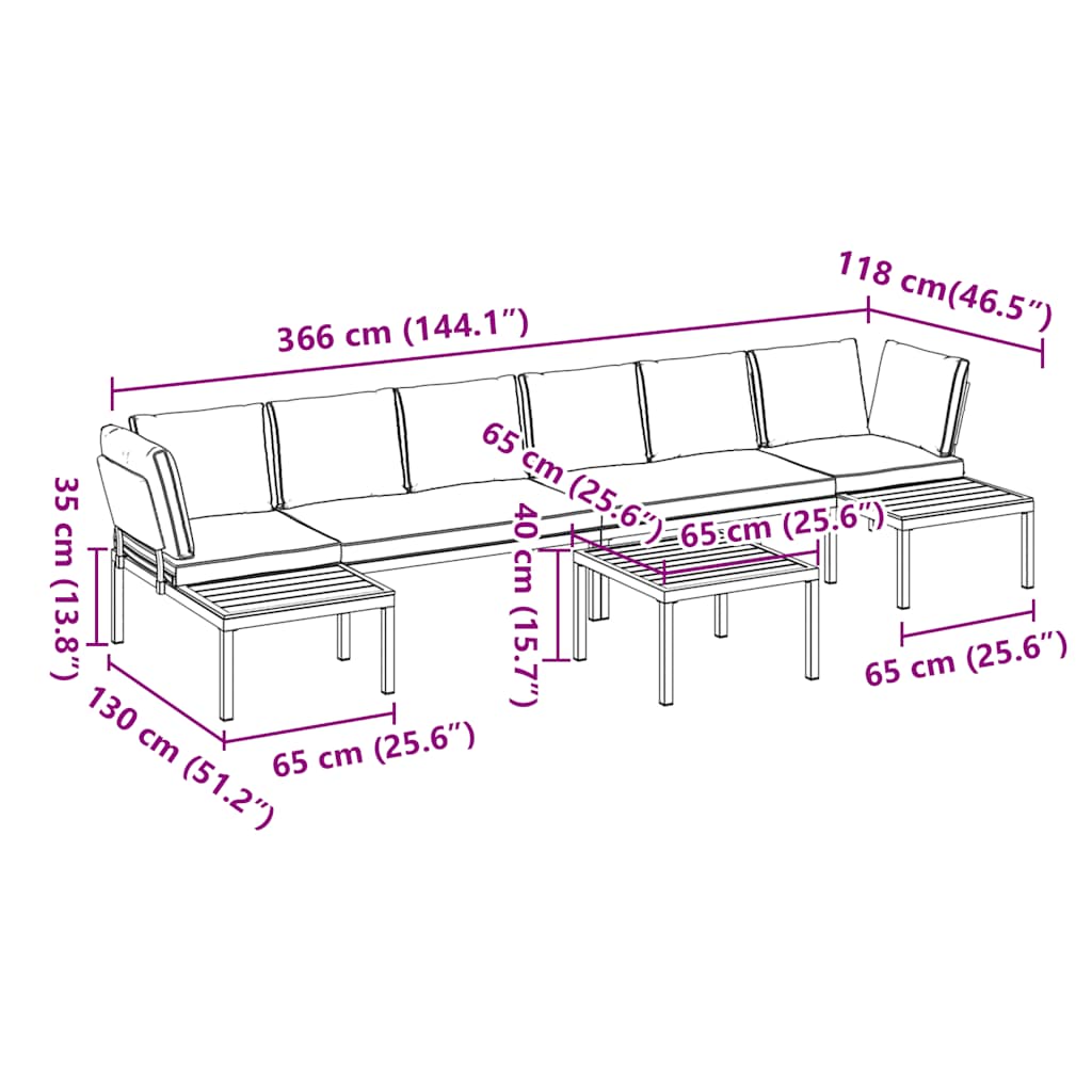 This garden sofa set is the perfect addition to your backyard, terrace, or patio, providing a comfortable and inviting space for chatting with family and friends or simply relaxing and enjoying the outdoors. Long-lasting and sturdy: The outdoor sofa set has an aluminium construction, making it durable and long-lasting.Sturdy top: The sturdy tabletop of the patio table is ideal for placing your drinks or any other necessities you need close at hand.Comfortable seat experience: This outdoor furniture, complete with thickly padded cushions, offers a comfortable seating experience. Removable and washable cover: These seat cushions feature removable covers for easy washing and maintenance.Modular design: This outdoor furniture set has a modular design, making it completely flexible and easy to move around, so you can create a customised outdoor furniture arrangement. Good to know:To make sure your outdoor furniture stays beautiful, we recommend protecting it with a waterproof cover.