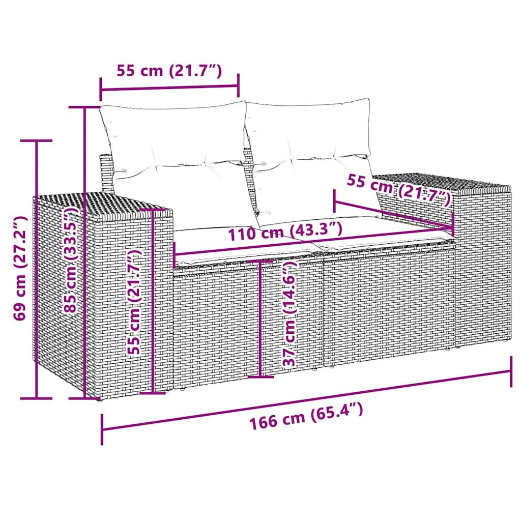 This garden sofa set is the perfect addition to your backyard, terrace, or patio, providing a comfortable and inviting space for chatting with family and friends or simply relaxing and enjoying the outdoors. Durable material: PE rattan, also known as poly rattan, is a strong, low-maintenance synthetic material that looks like natural rattan. It’s lightweight, easy to clean, and commonly used for outdoor furniture due to its durability and weather-resistant properties.Storage function with water-resistant bag: The garden furniture features storage space under the seat, complete with a water-resistant bag for storing cushions, toys, and other items. The inner bag can be securely fastened to the outdoor furniture with hook-and-loop fasteners for added stability.Adjustable tabletop: The tabletop can be lifted to make the table higher, which transforms the outdoor table from a coffee table to a dining table. It’s perfect for having guests over or eating meals outside.Removable and washable cover: These seat cushions feature removable covers for easy washing and maintenance.Modular design: This outdoor furniture set has a modular design, making it completely flexible and easy to move around, so you can create a customised outdoor furniture arrangement. Good to know:To make sure your outdoor furniture stays beautiful, we recommend protecting it with a waterproof cover.