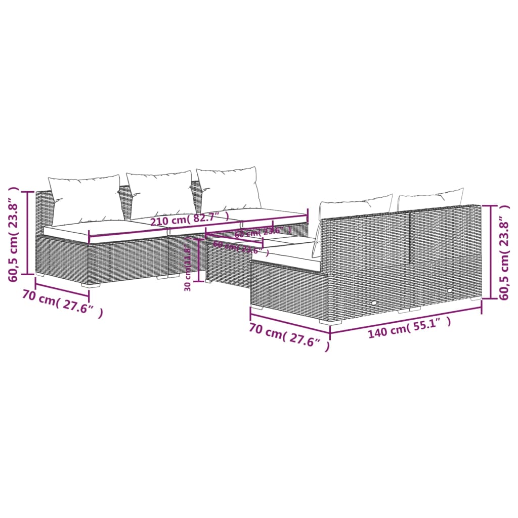 vidaXL 6 Piece Garden Lounge Set with Cushions Poly Rattan Black