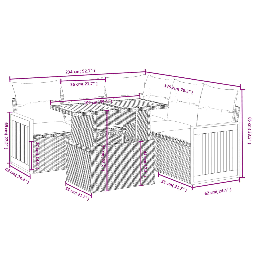 vidaXL 6 Piece Garden Sofa Set with Cushions Beige Poly Rattan