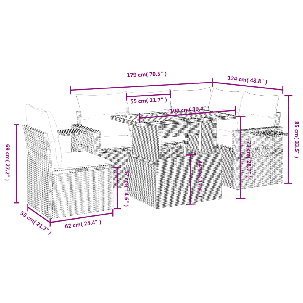 vidaXL 6 Piece Garden Sofa Set with Cushions Grey Poly Rattan Original price was: $1,094.47.Current price is: $547.24.