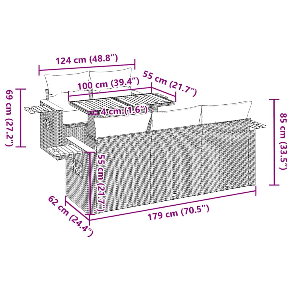 This garden sofa set is the perfect addition to your backyard, terrace, or patio, providing a comfortable and inviting space for chatting with family and friends or simply relaxing and enjoying the outdoors.Durable material: PE rattan, also known as poly rattan, is a strong, low-maintenance synthetic material that looks like natural rattan. It’s lightweight, easy to clean, and commonly used for outdoor furniture due to its durability and weather-resistant properties.Storage function with water-resistant bag: Each garden seat features storage space under the seat, complete with a water-resistant bag for storing cushions, toys, and other items. The inner bags have a top cover and can be securely fastened to the seats with hook-and-loop fasteners for added stability.Convenient side table: This outdoor furniture features a foldable side table with a gas spring, providing a convenient spot to keep your essentials within easy reach.Removable and washable cover: These seat cushions feature removable covers for easy washing and maintenance.Modular design: This outdoor furniture set has a modular design, making it completely flexible and easy to move around, so you can create a customised outdoor furniture arrangement.Good to know:To make sure your outdoor furniture stays beautiful, we recommend protecting it with a waterproof cover.