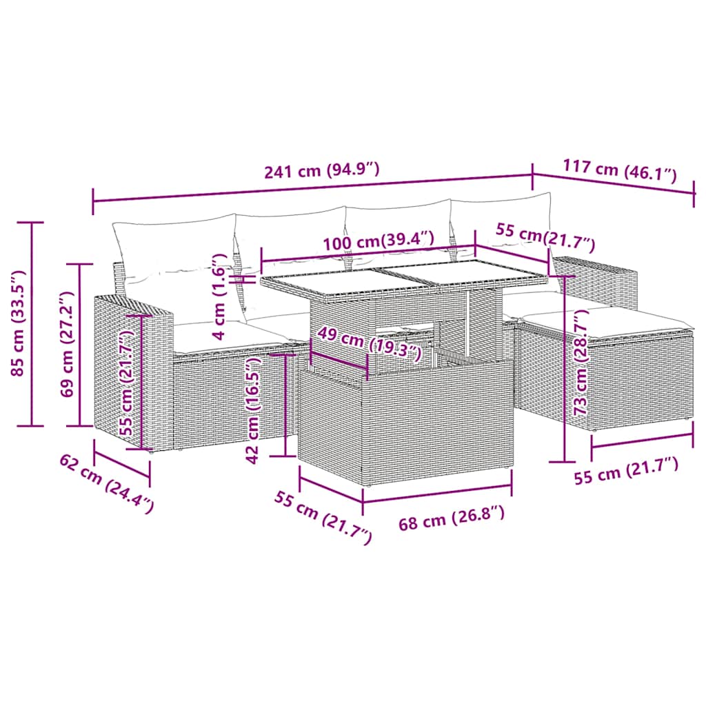 vidaXL 6 Piece Garden Sofa Set with Cushions Grey Poly Rattan