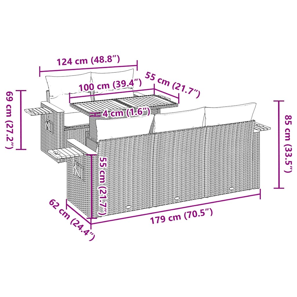 vidaXL 6 Piece Garden Sofa Set with Cushions Beige Poly Rattan Acacia Original price was: $1,088.44.Current price is: $544.22.