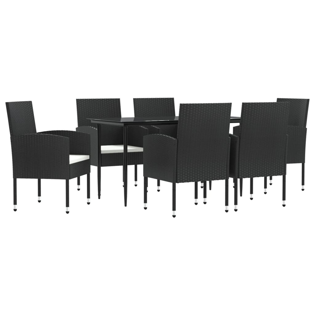 vidaXL 7 Piece Garden Dining Set Black Poly Rattan and Steel