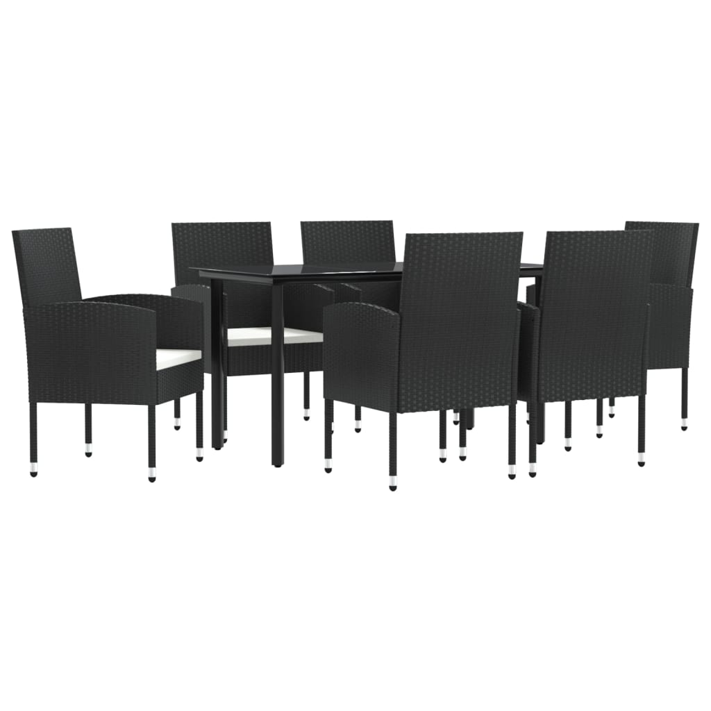 vidaXL 7 Piece Garden Dining Set Black Poly Rattan and Steel