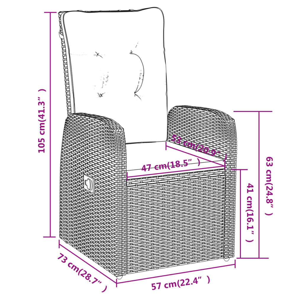 • Chair dimensions (not reclined): 57 x 73 x 105 cm (W x D x H)