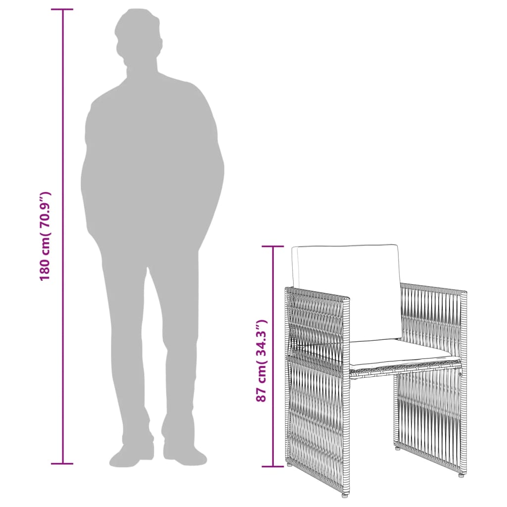 This garden dining set is a great choice for al fresco dining or just relaxing in the garden, backyard, or on the patio. Durable material: PE rattan, also known as poly rattan, is a strong, low-maintenance synthetic material that looks like natural rattan. It’s lightweight, easy to clean, and commonly used for outdoor furniture due to its durability and weather-resistant properties.Compact storage: These garden chairs and stools can be neatly tucked underneath the table, allowing for space-saving storage.Comfortable seat experience: This outdoor furniture, complete with thickly padded cushions, offers a comfortable seating experience.Removable and washable cover: These seat cushions feature removable covers for easy washing and maintenance.Robust and stable frame: The powder-coated steel frame ensures that the garden furniture is strong and stable for daily outdoor use. Good to know: To make sure your outdoor furniture stays beautiful, we recommend protecting it with a waterproof cover.
