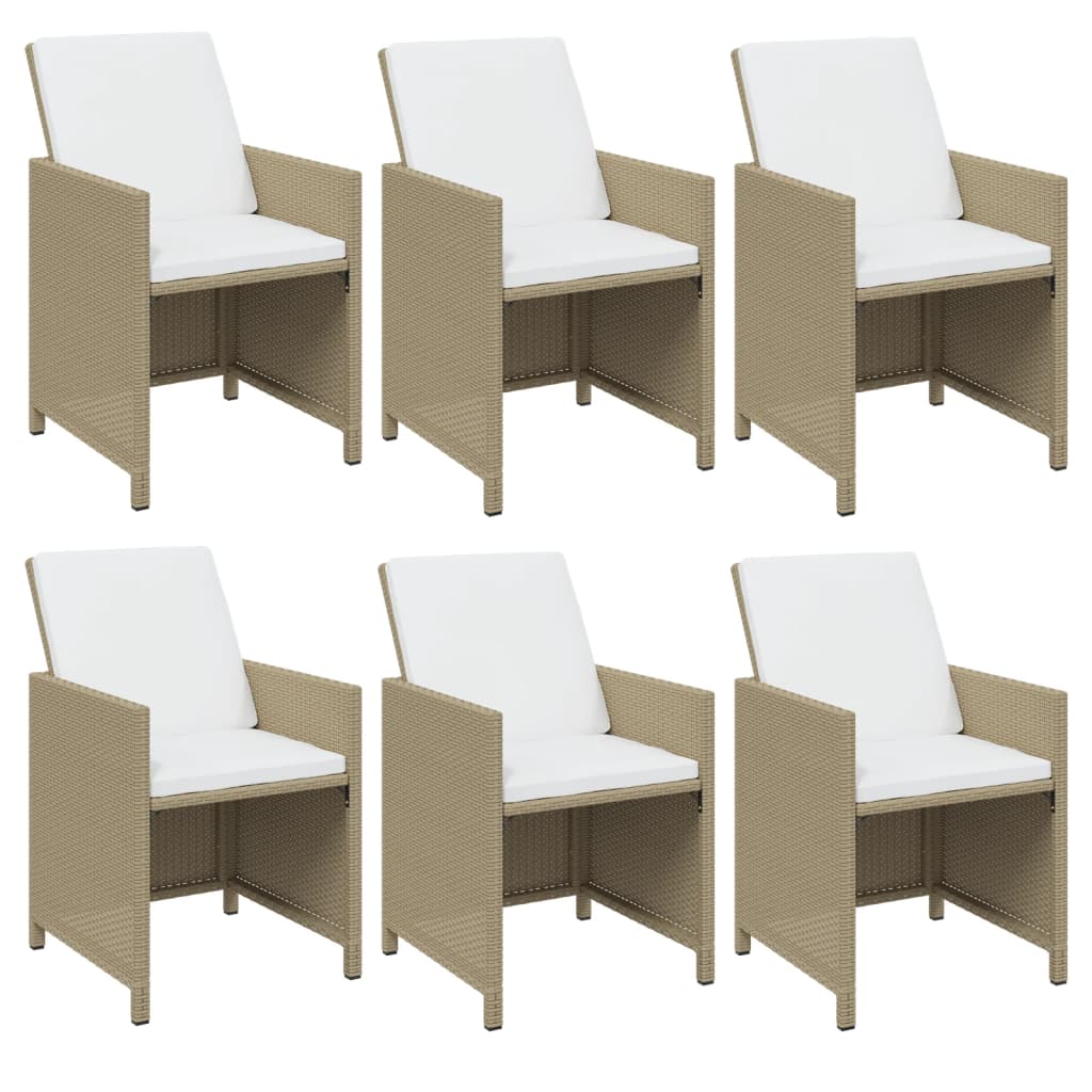 vidaXL 7 Piece Garden Dining Set with Cushions Poly Rattan Beige