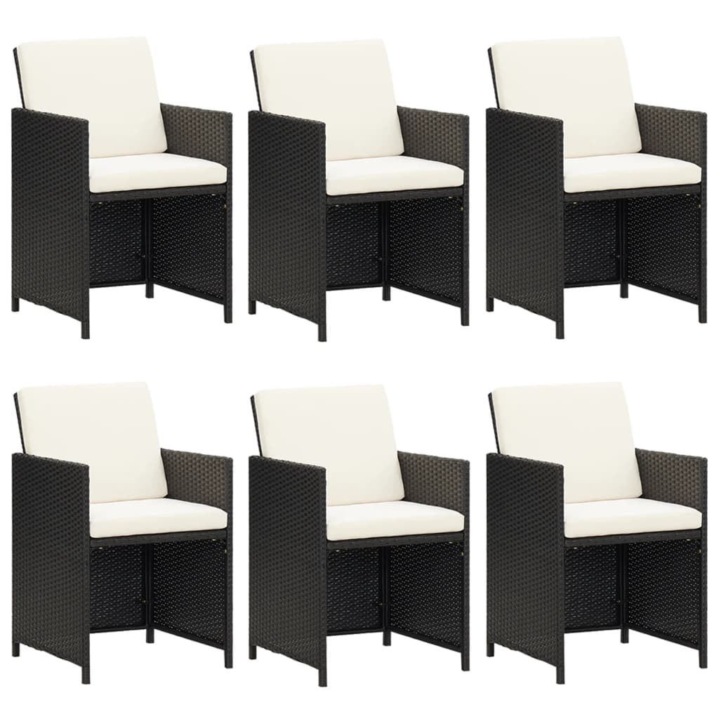 vidaXL 7 Piece Garden Dining Set with Cushions Poly Rattan Black
