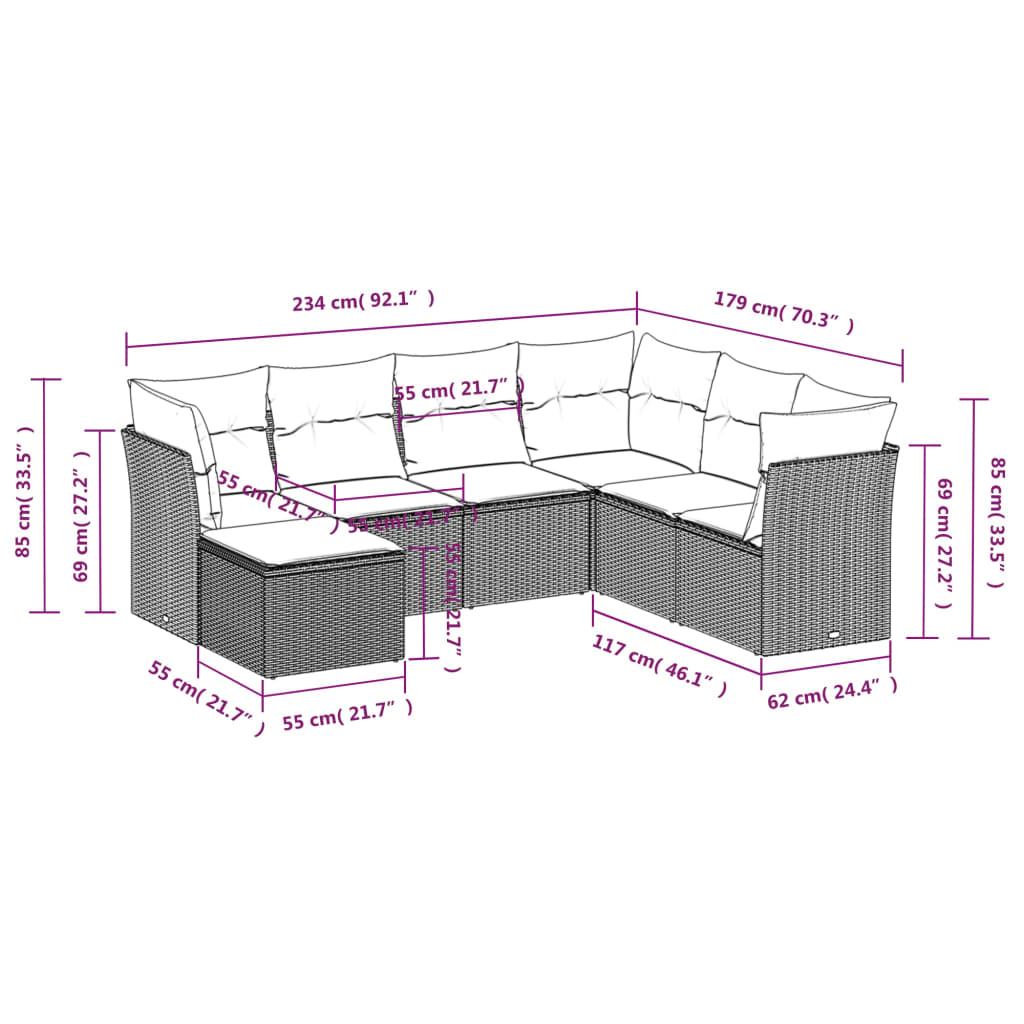 vidaXL 7 Piece Garden Sofa Set with Cushions Black Poly Rattan