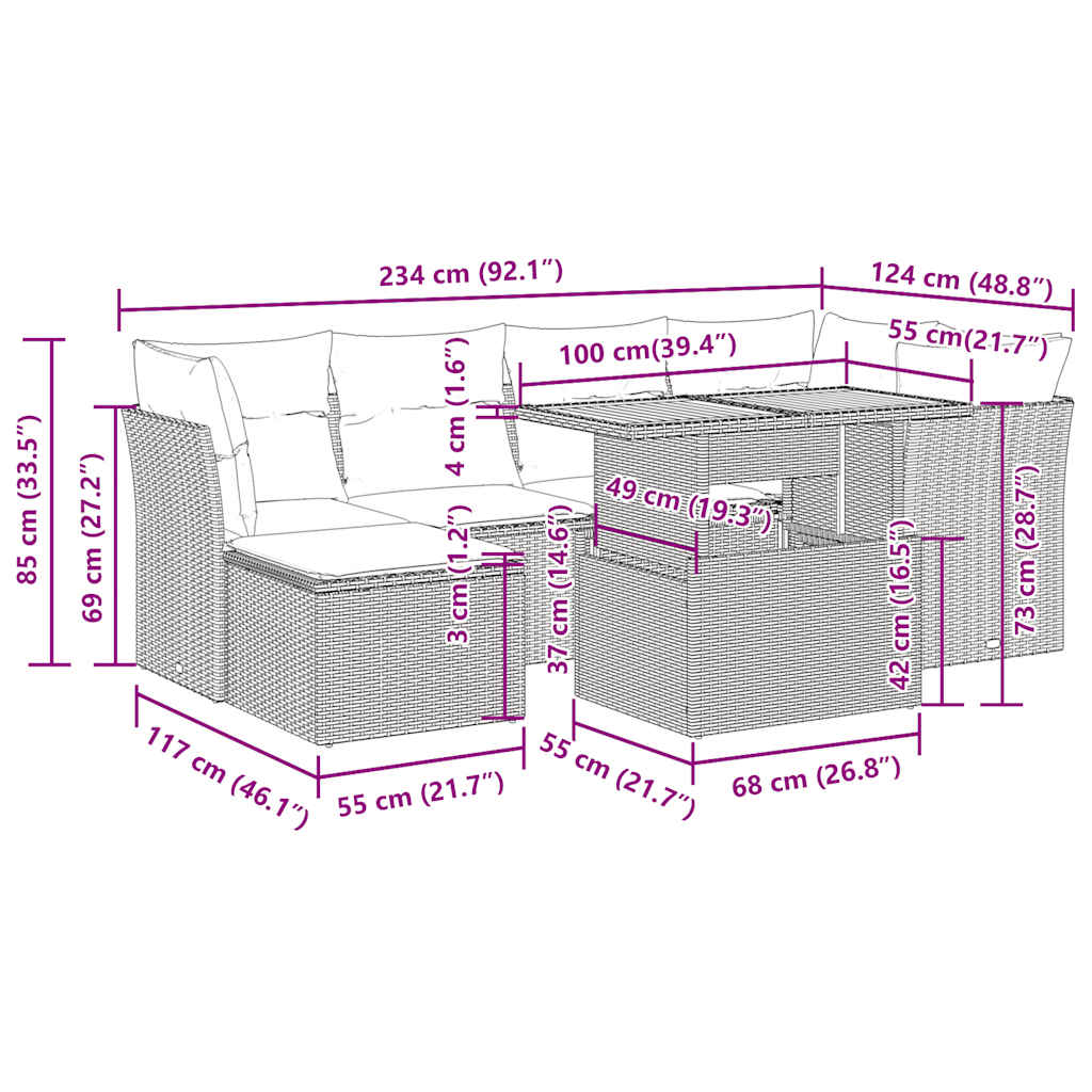 vidaXL 7 Piece Garden Sofa Set with Cushions Grey Poly Rattan