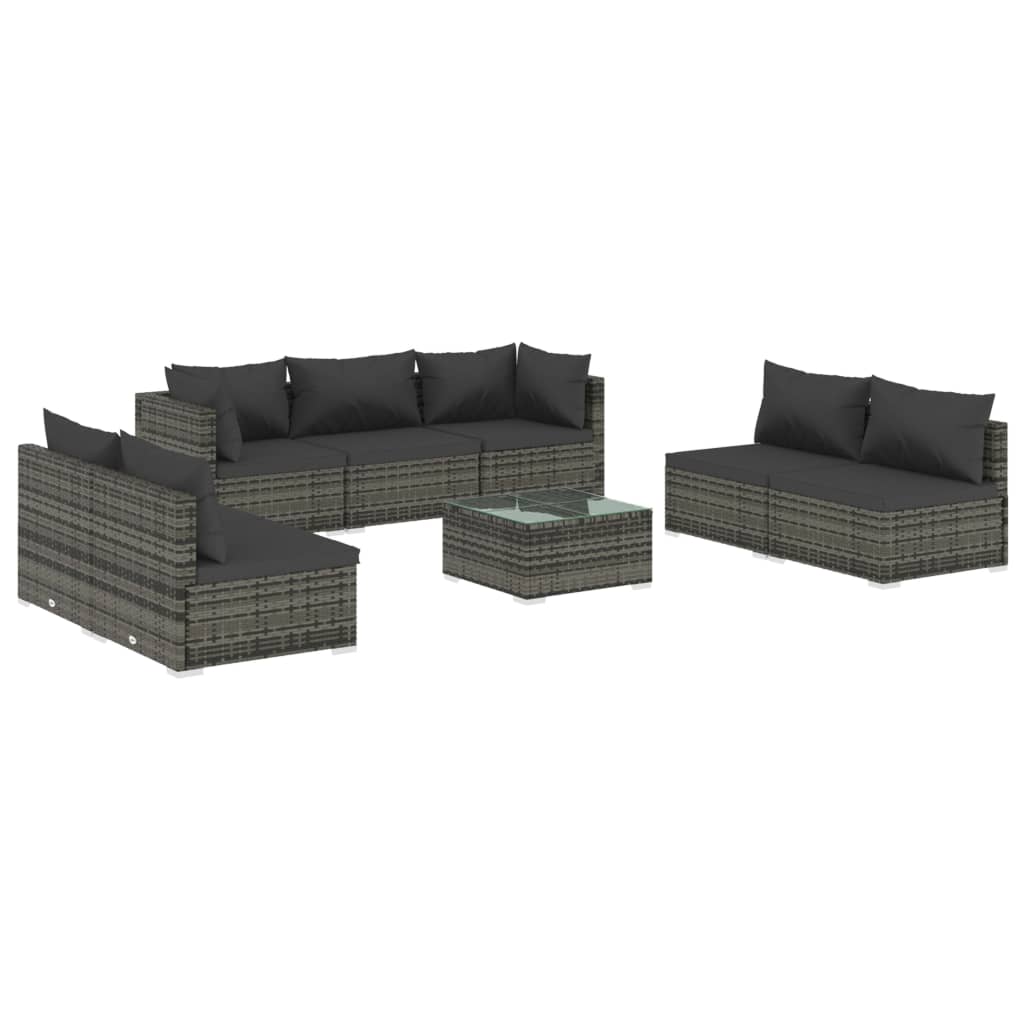 vidaXL 8 Piece Garden Lounge Set with Cushions Poly Rattan Grey