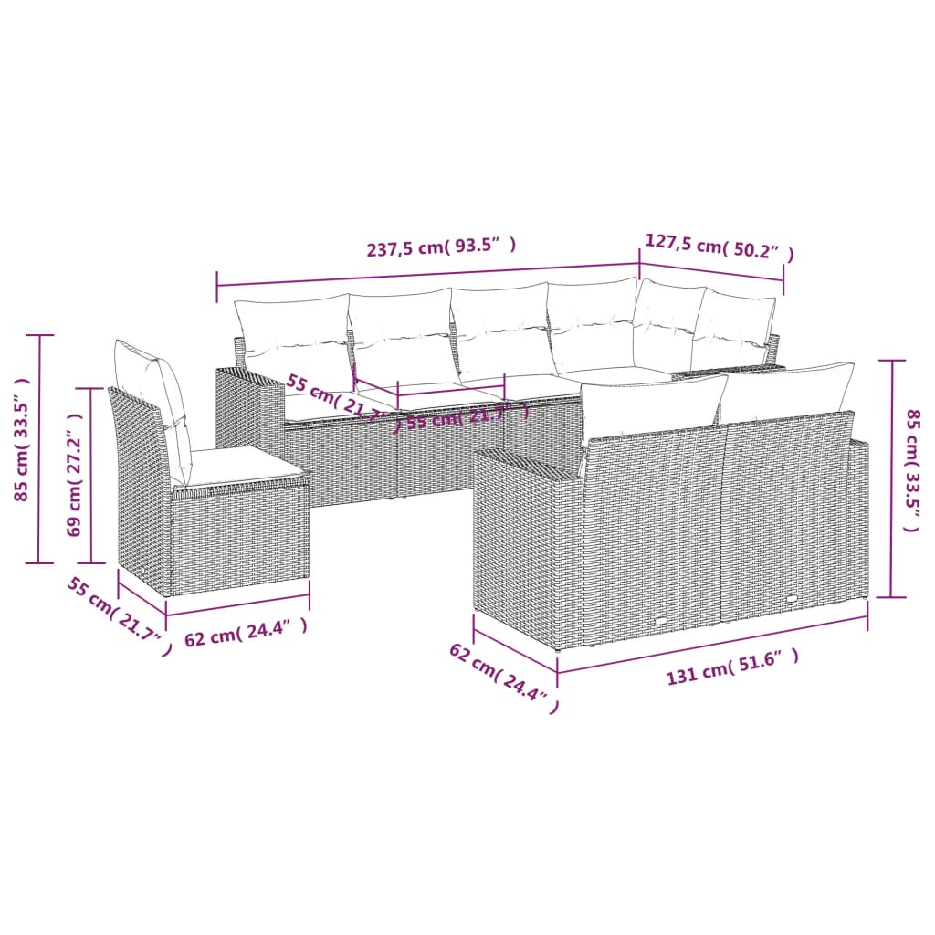 vidaXL 8 Piece Garden Sofa Set with Cushions Grey Poly Rattan