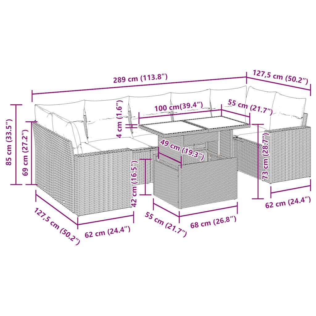 vidaXL 8 Piece Garden Sofa Set with Cushions Grey Poly Rattan