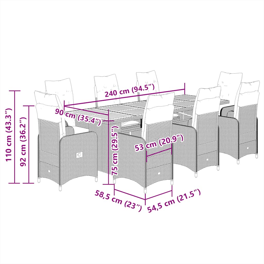 vidaXL 9 Piece Garden Bistro Set with Cushions Grey Poly Rattan