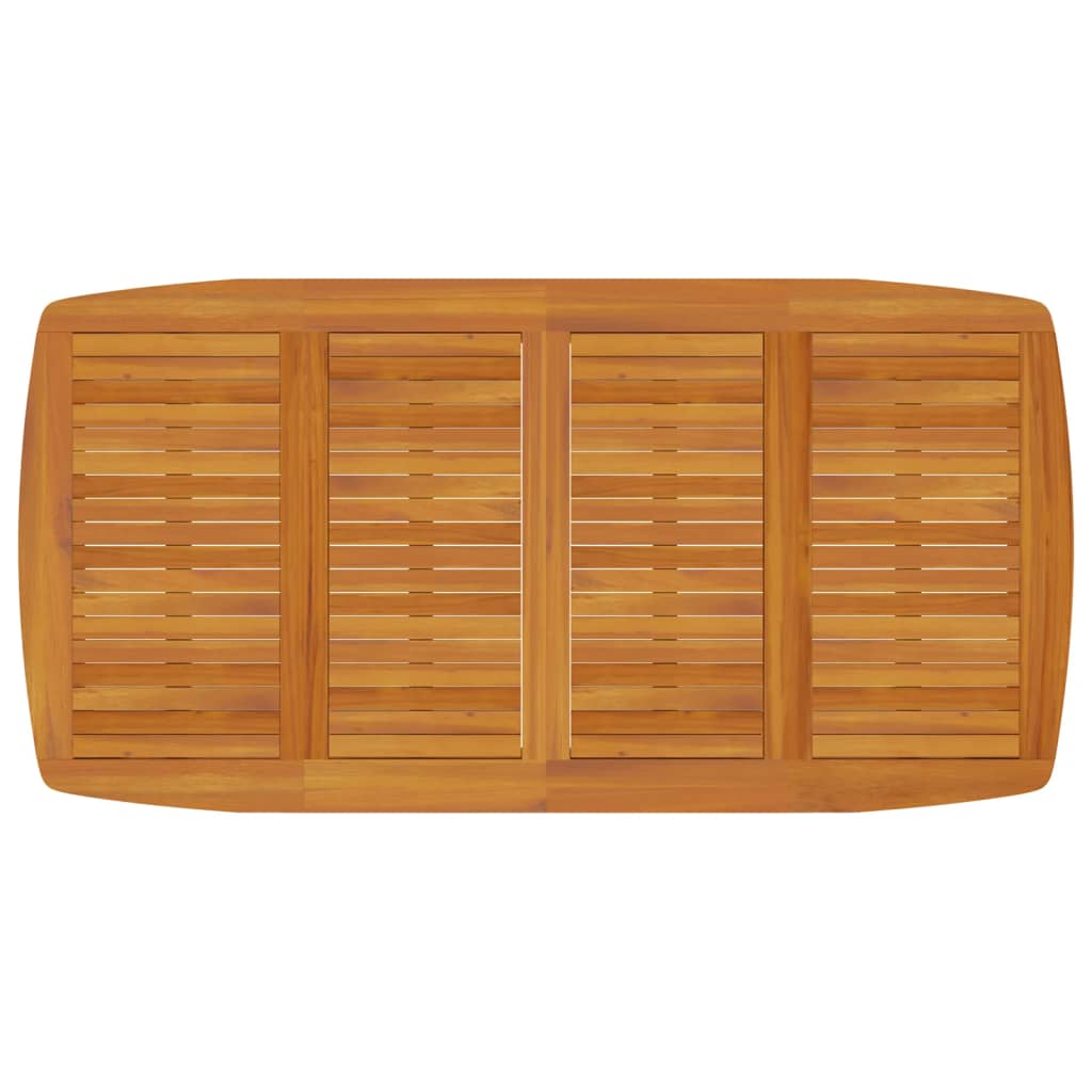 Sit down and enjoy your lovely outdoor dinner or any meal with this wooden garden dining set. Solid acacia wood: Solid acacia wood is a beautiful natural material. Acacia wood is a tropical hardwood, which is dense, sturdy, and durable. Sturdy tabletop: The tabletop of this outdoor table offers a firm space for drinks, snacks, decorative items, and other essentials. Slatted design: This patio dining set features a slatted design which brings a rustic charm Note:In order to extend the life of your outdoor furniture, we recommend you to clean it regularly and do not leave it outdoors without protection unnecessarily. Clean: Use a mild soap solution.Storing: If possible, store in a cool, dry place indoors. If the product is stored outdoors, protect it with a waterproof cover. Wipe and dry the excess water or snow from flat surfaces after a rain or snowfall. Allow sufficient air circulation to avoid moisture-related damage.