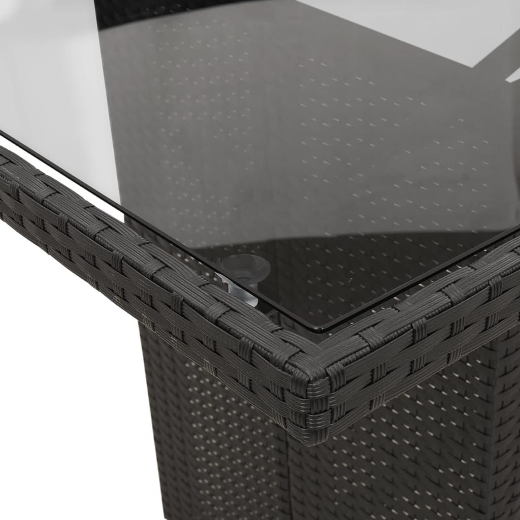 This garden dining set is a great choice for al fresco dining or just relaxing in the garden, backyard, or patio. Durable material: PE rattan, also known as poly rattan, is a strong, low-maintenance synthetic material that looks like natural rattan. It’s lightweight, easy to clean, and commonly used for outdoor furniture due to its durability and weather-resistant properties. Glass tabletop: The outdoor table’s top is made from strong and durable tempered glass, making it easy to clean with a damp cloth and adding a touch of elegance to your outdoor space. Comfortable seat experience: This outdoor furniture, complete with thickly padded cushions, offers a comfortable seating experience. Robust and stable frame: The powder-coated steel frame ensures that the garden furniture is strong and stable for daily outdoor use. Good to know:To make sure your outdoor furniture stays beautiful, we recommend protecting it with a waterproof cover.