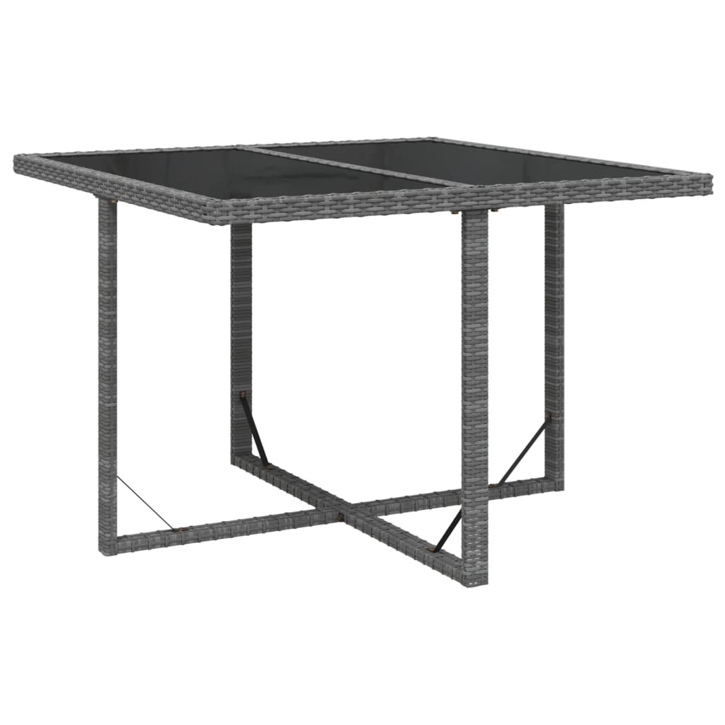 This stylish garden dining set provides you with a leisurely and comfortable time with your family and friends. Made of weather-resistant and waterproof PE rattan, this outdoor dining set is easy to clean, hard-wearing and suitable for daily use. The powder-coated steel frame makes the table, chairs and stools sturdy and durable. The glass tabletop is ideal for placing drinks, food, or some decorative items. The thick, soft, foam-filled seat and back cushions also add additional seating comfort. What’s more, you can pull the backrest down and store the chairs under the table, saving valuable storage space when the set is not in use. Thanks to the lightweight construction, all items are easy to move. Note: In order to extend the life of your outdoor furniture, we recommend you to clean it regularly and do not leave it outdoors without protection unnecessarily.Clean: Use a mild soap solution.Storing: If possible, store in a cool, dry place indoors. If the product is stored outdoors, protect it with a waterproof cover. Wipe and dry the excess water or snow from flat surfaces after a rain or snowfall. Allow sufficient air circulation to avoid moisture-related damage.