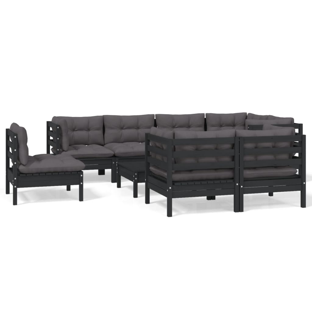 vidaXL 9 Piece Garden Lounge Set with Cushions Black Solid Pinewood
