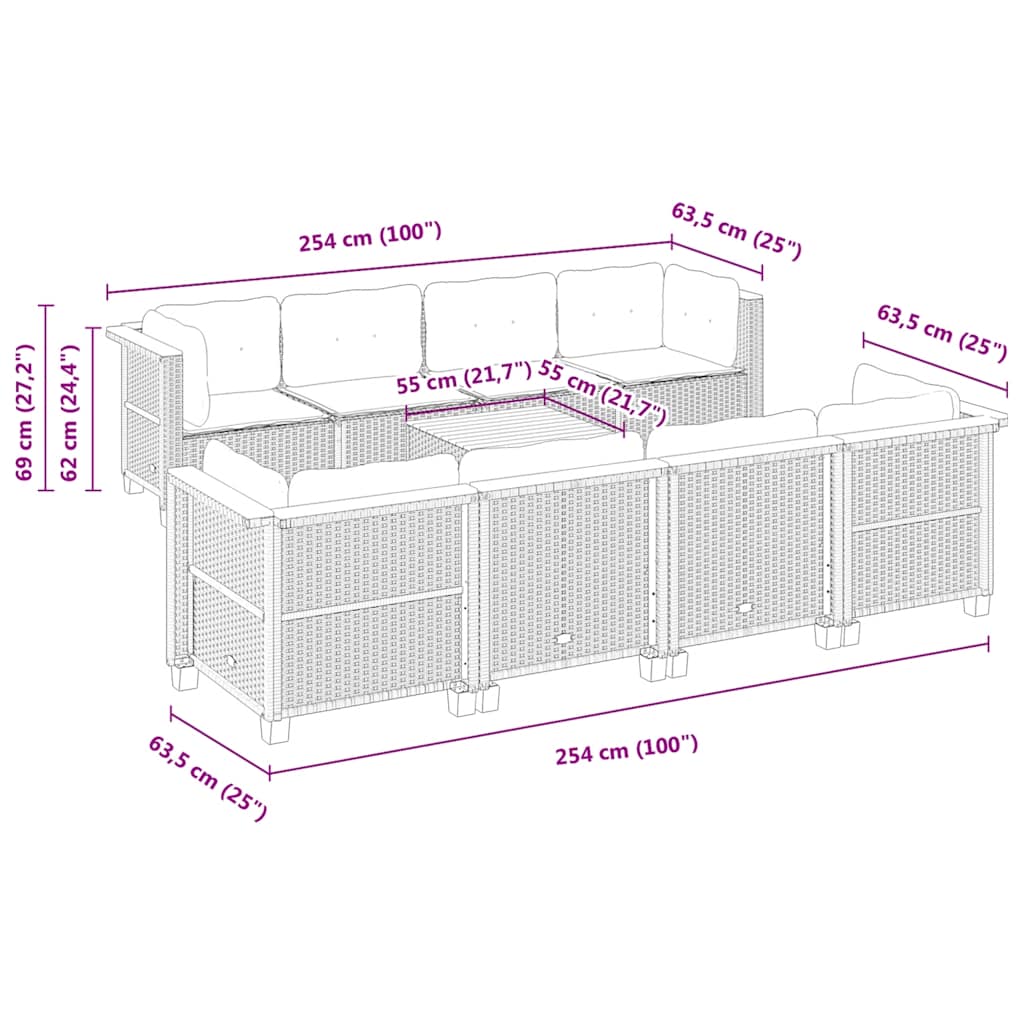 vidaXL 9 Piece Garden Sofa Set with Cushions Beige Poly Rattan