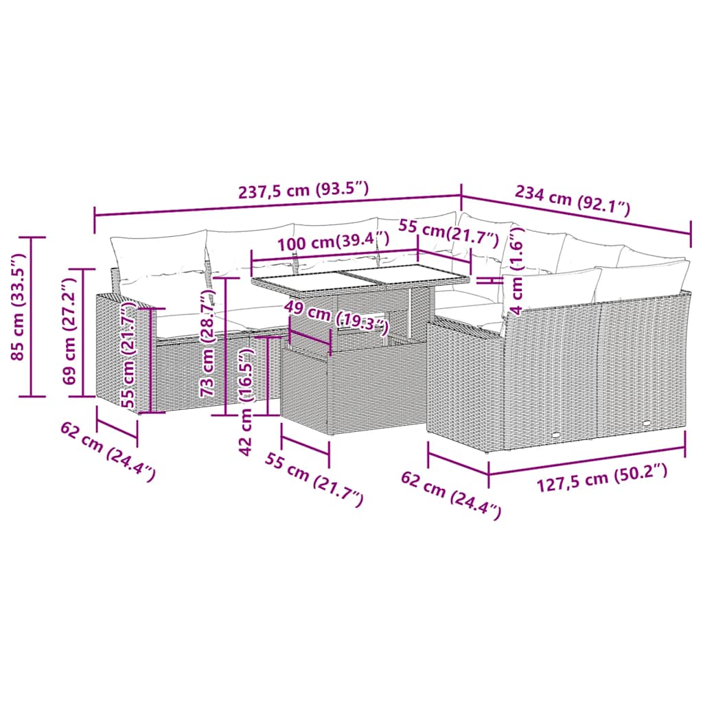 vidaXL 9 Piece Garden Sofa Set with Cushions Black Poly Rattan