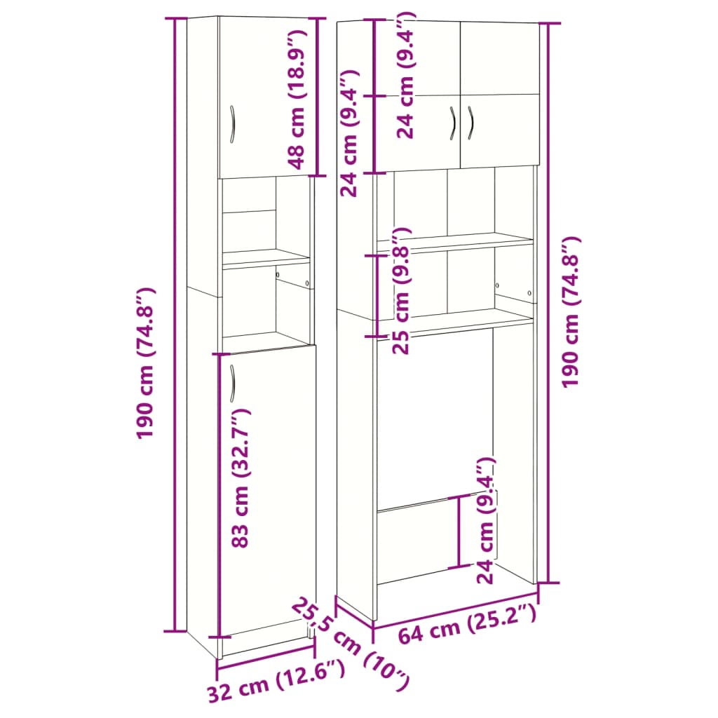 - Cabinet dimensions: 32 x 25.5 x 190 cm (W x D x H)