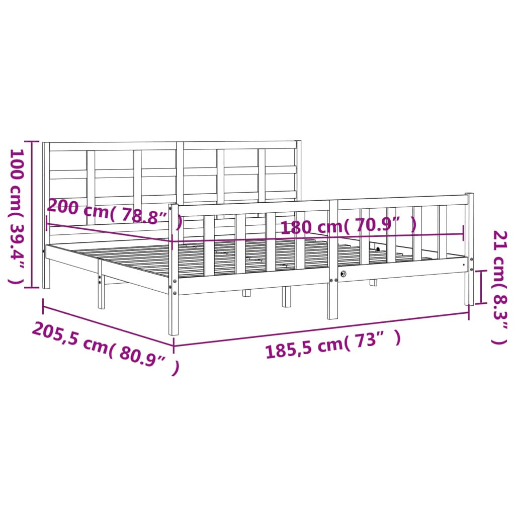 vidaXL Bed Frame without Mattress 183×203 cm King Solid Wood Pine