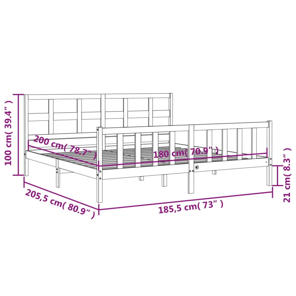 vidaXL Bed Frame without Mattress Black 183×203 cm King Solid Wood Pine