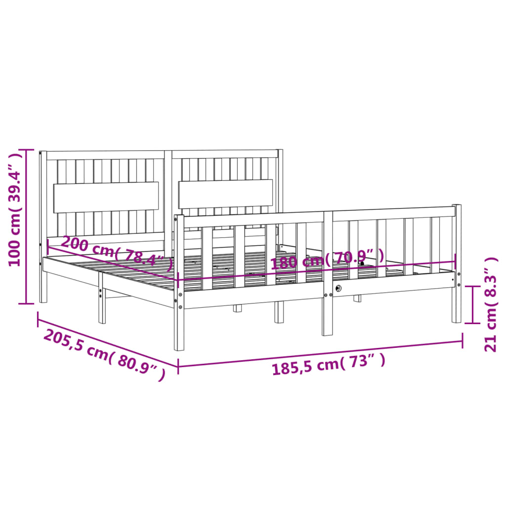 vidaXL Bed Frame without Mattress White 183×203 cm King Solid Wood Pine