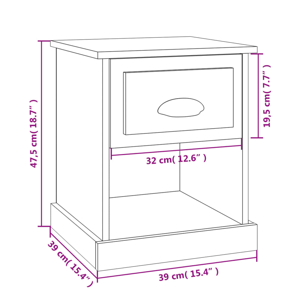 vidaXL Bedside Cabinet White 39x39x47.5 cm Engineered Wood
