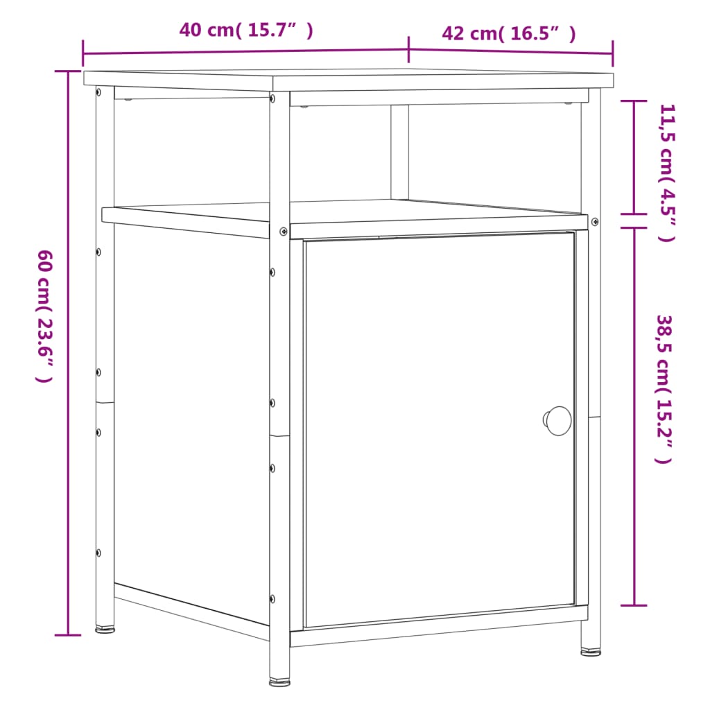 With a simple and compact design, these bedside cabinets fit easily into your bedroom or living room and add a timeless charm to your interior. Durable material: The engineered wood is of exceptional quality with smooth surface and also features strength, stability and resistance to moisture. Sturdy frame: The iron frame ensures sturdiness and stability.Ample storage space: The bedside table offers ample storage space for keeping your various daily essentials well organised and within easy reach.Displaying function: You can also place your favourite photos, decorations, or flowers on top of the side table to enrich your life.Adjustable feet: Four adjustable feet with plastic pads keep the side cabinet balanced on uneven ground and increase stability. Warning:To prevent it being overturned, this product must be used with the provided wall attachment device.