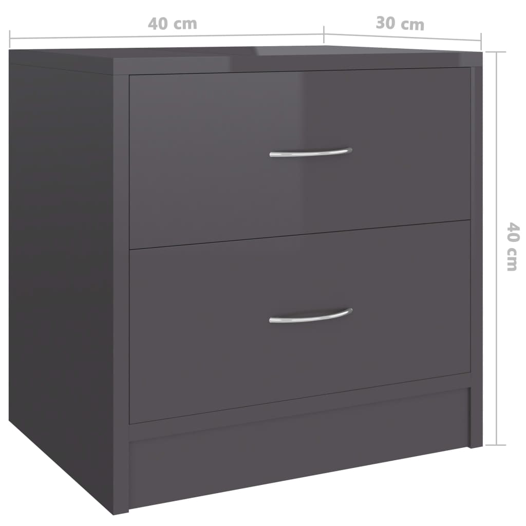 vidaXL Bedside Cabinets 2 pcs High Gloss Grey 40x30x40 cm Engineered Wood