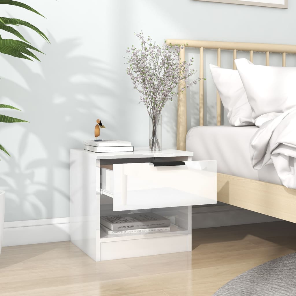 vidaXL Bedside Cabinets 2 pcs High Gloss White Engineered Wood