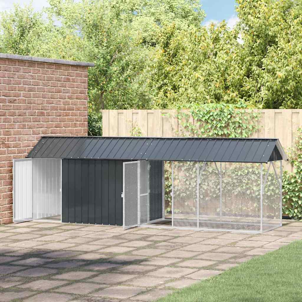 This Bird Aviary with Extension is a spacious and stylish pad for your pets. It mixes modern looks with practicality, making it a great fit for any garden or terrace. Picture your feathered mates stretching their wings and soaking up the sun in a safe, solid enclosure that blends right in with their surroundings. Semi-opaque Panels: Let in light while keeping your birds cosy. Great looks with practical use. Rectangular Shape: Loads of space for your birds to explore. It gives you max internal area without taking over your patio or terrace. Durable Galvanized Steel: Strong enough to handle lively birds and rough weather, keeping your pets safe and sound. Pet-Friendly Features: Safe and non-toxic materials for your birds, with an option to expand the space as needed. Modern Aesthetic: Finished in stylish anthracite, this aviary looks ace in any outdoor spot, fitting in with various garden styles.
