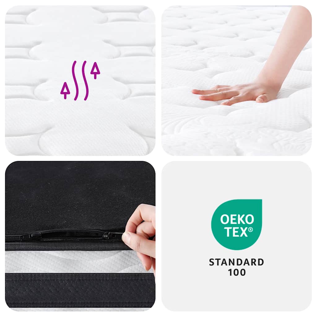 This bonnell spring mattress is designed to bring you a nice feel and a comfortable sleeping experience at home. Durability and longevity: The fabric features a simple and clean look while remaining breathable, skin-friendly, and long-lasting. Excellent support: The Bonnell spring system consists of interconnected, hourglass-shaped steel coils that are firm and stable, providing a supportive and durable base for the mattress. Enhanced comfort: The spring mattress is designed with multiple layers, including a foam layer, insolation pad layer, and spring layer. This combination provides a soft to medium feel and cradling comfort for all sleep positions. Additionally, the mattress effectively absorbs noise and vibration caused by tossing and turning, ensuring a peaceful and undisturbed sleep. Easy maintenance: The spring foam mattress features a long zipper in the bottom, which makes it easy to remove the cover for cleaning. Good to know:This mattress is composed of two individual mattress cores, combined to form a single, unified mattress.The cover of the mattress is washable at up to 40 °C. Please keep in mind not to wash it frequently. For your convenience, the mattress is compressed and rolled in a box, and you can easily move it and set it up in your room.