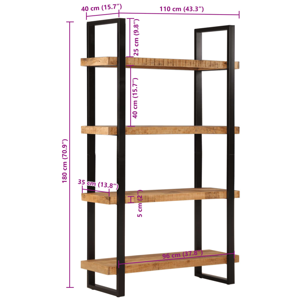 vidaXL Bookcase 4-Tier 110x40x180 cm Solid Wood Mango and Iron