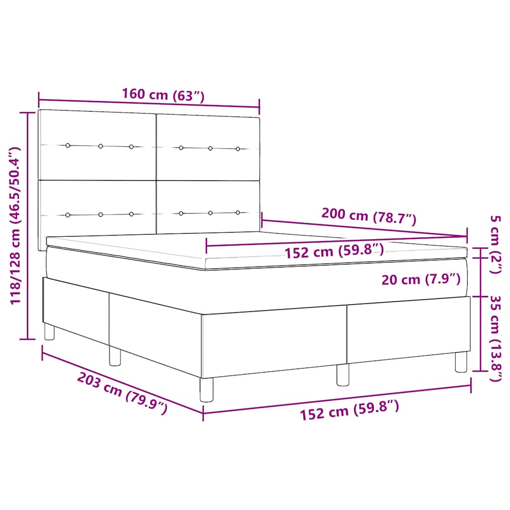 vidaXL Box Spring Bed Striped Dark Grey and White 203 x 152 x 128 cm