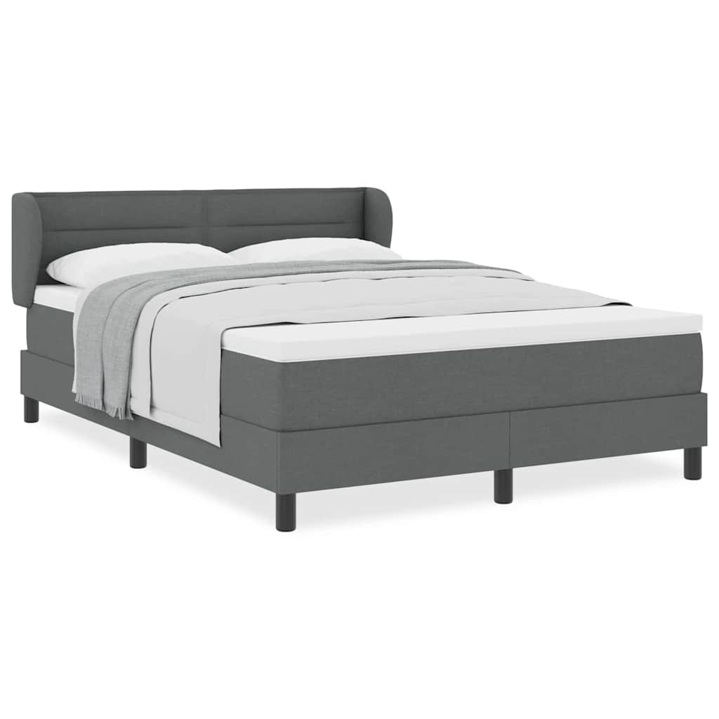 vidaXL Box Spring Bed Striped Dark Grey and White 203 x 152 x 88 cm