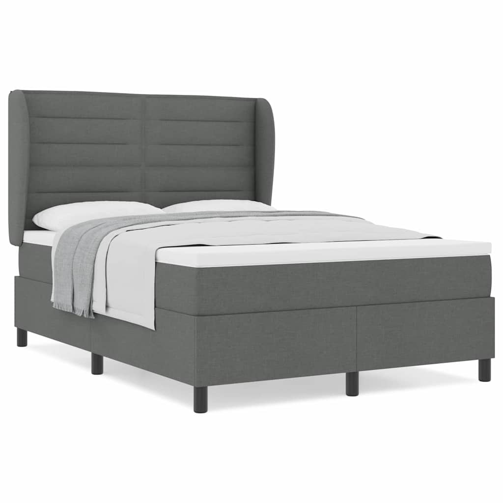 vidaXL Box Spring Bed Striped with Headboard White 193 x 137 x 128 cm
