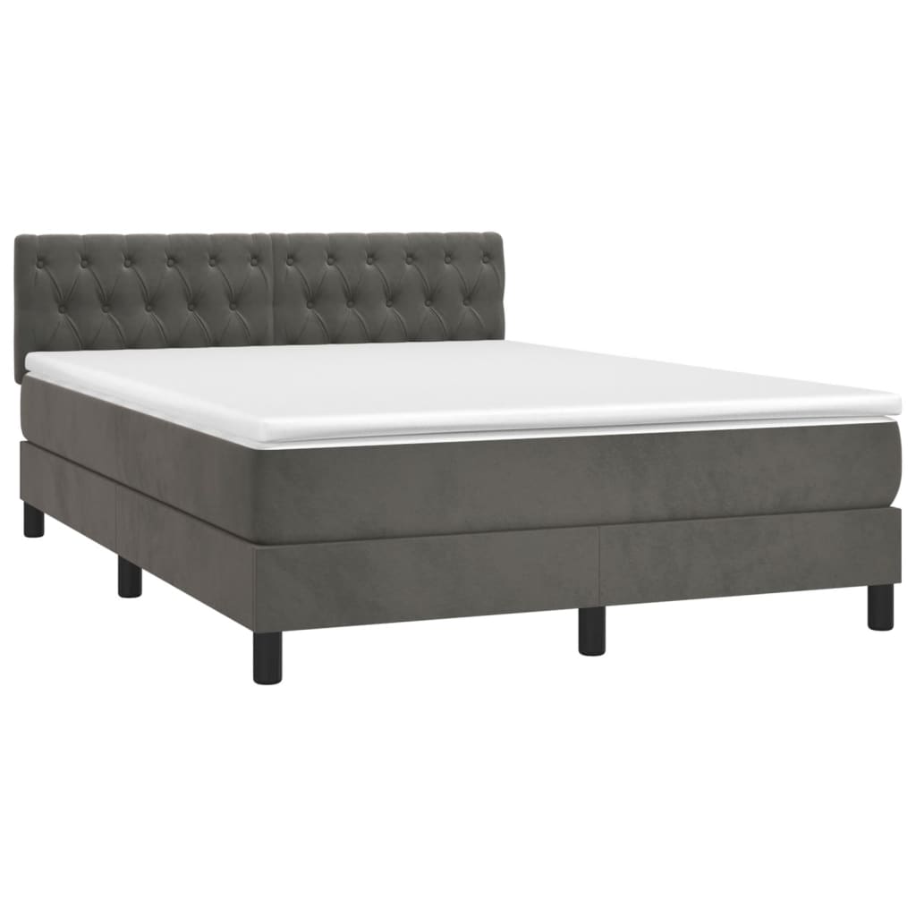 vidaXL Box Spring Bed with Mattress Dark Grey 137×187 cm Double Size Velvet