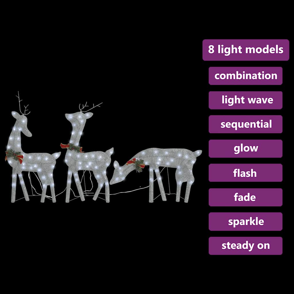 vidaXL Christmas Reindeer Family 270x7x90 cm Silver Cold White Mesh
